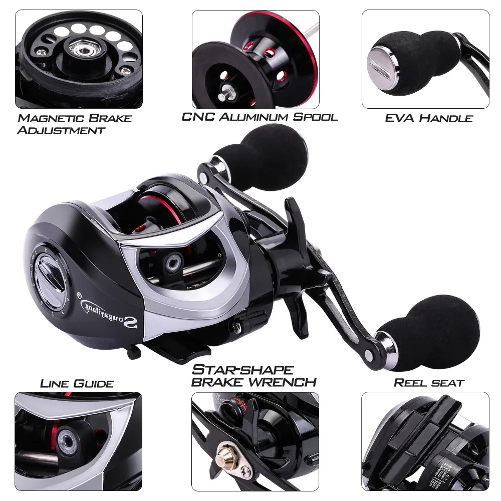 Sougayilang 4 Section M Power Carbon Fiber Baitcsting Rod and Left/Right Hand Casting Reel Fishing Combos Set